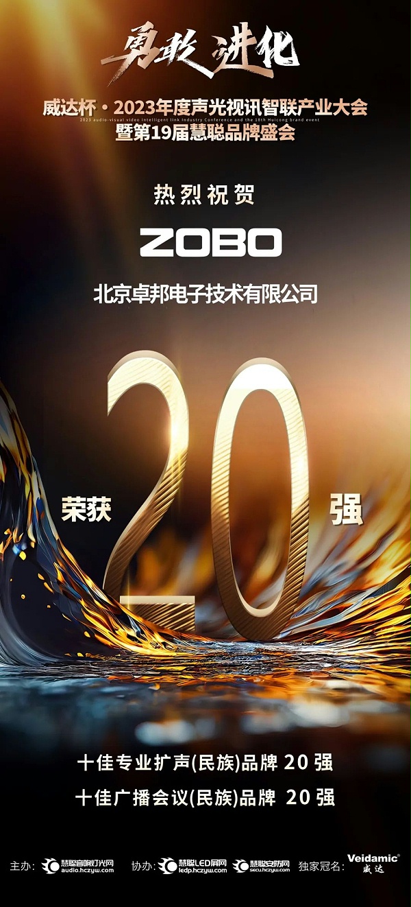 重磅揭晓!ZOBO卓邦旗下ZOBO品牌晋级2023声光视讯行业20强品牌