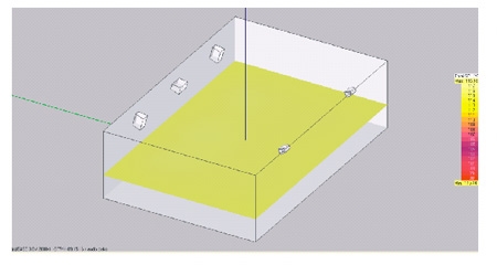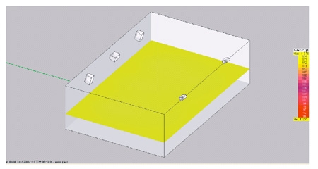 此图可让你直观的知道声压是否达到指标,在这里厅堂的大部分面积声压达到107dB超出一标准,并拥有足够的预量,能保证系统可靠的运行